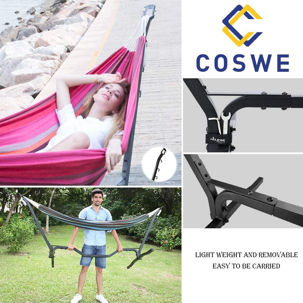 Lujo Living Free-Standing Double Hammock With Stand - 55 Gadgets from 55gadgets.com Perfect for indoor/outdoor use, this hammock holds up to 450 pounds with the help of a reinforced metal support ring and a cotton polyester blend. Shop for hammock stands in hammock stands & accessories. Cotton double hammock with stand, boasting breathable cotton construction and a lively blue striped motif. Best hammock stand on the market with an average price range. Please take a look at the last five pictures! Lazzo 10 ft curved wood hammock stand only, indoor & outdoor pine hammock arc stand with 2x chains and 4x hooks for home patio garden yard picnic camp, 250 lb capacity. (2) total ratings 2, $69.99 new. The stand is 9 ft long and made from heavy steel, but can still be broken down without any tools.